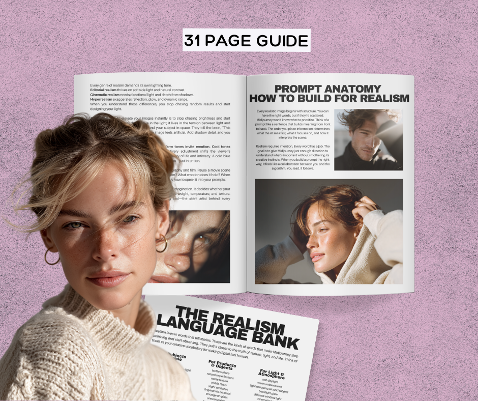 The Midjourney Mastery Bundle is a premium collection of four in-depth Midjourney guides designed to take you from curious beginner to creative powerhouse. No guesswork. No overwhelm. Just clear frameworks that help you create scroll-stopping images, cinematic visuals, and premium-level graphics with intention.